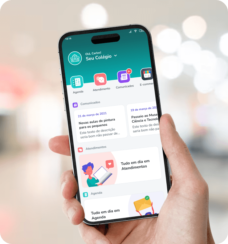 Ao trazer as informações, disponibilize Notas, Cobranças, Mensalidades, Ocorrências, Calendário e outros diretamente na interface intuitiva do SuperApp.