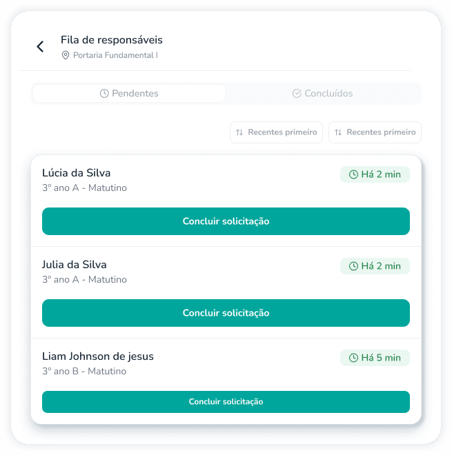 Enquanto responsáveis solicitam, a escola organiza. Um fluxo contínuo, mais ágil e seguro para todos.
