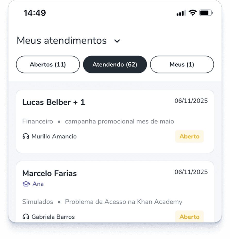 O Atendimento centraliza as conversas entre escola, famílias e equipe em um só lugar, garantindo mais organização e agilidade no dia a dia.