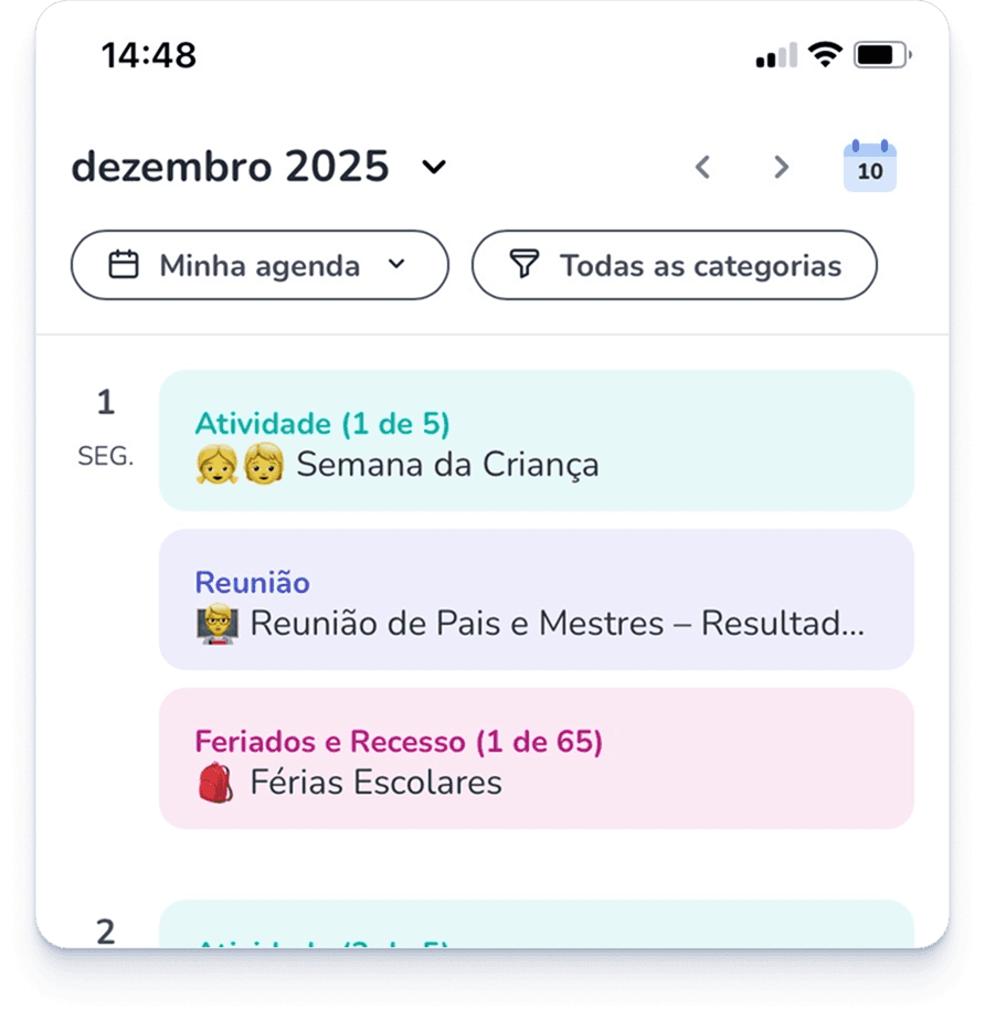 Agenda digital que conecta escola, alunos e responsáveis em uma comunicação fluida, centralizada e acessível.