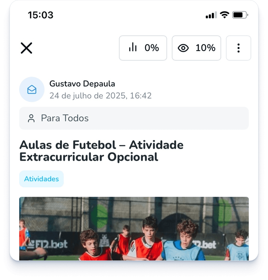 Os Comunicados facilitam a troca de informações entre escolas, responsáveis e alunos, de forma rápida, organizada e segura.
