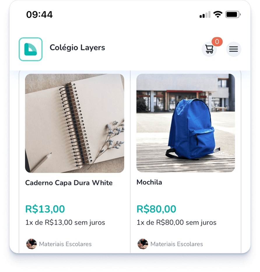 O E-commerce Layers facilita a compra de produtos e serviços da escola em um ambiente seguro e intuitivo.